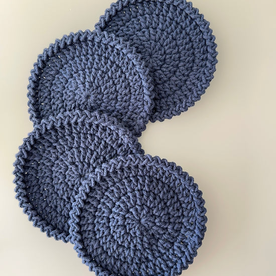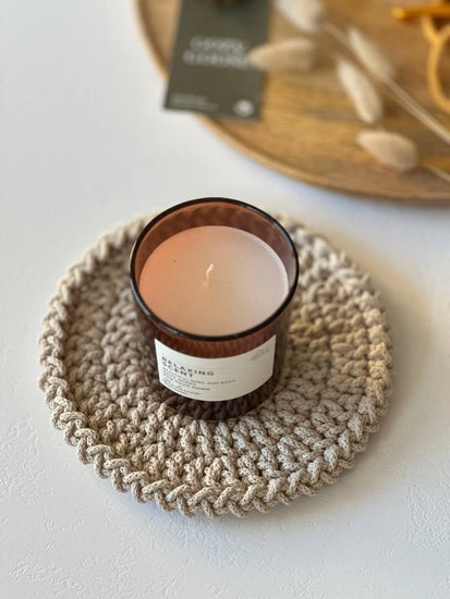 A set of simple crochet coasters with a clean, textured design — understated pieces that fit seamlessly into any modern home.