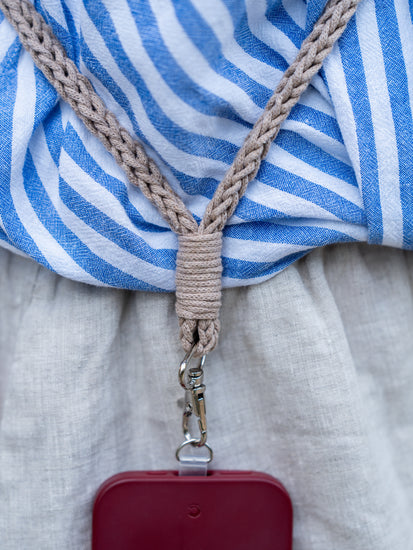 A crochet pattern for a crossbody phone strap — functional, lightweight, and modern. This design combines everyday practicality with a handmade touch, making it easy to carry your phone hands-free while adding a subtle textured detail to your look.