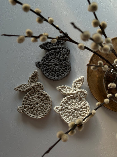 Bring a touch of playful charm to your spring table with these crochet bunny coasters. Their simple silhouette and handmade texture create a warm, seasonal accent — perfect for Easter gatherings or everyday use. A functional piece of décor that blends coziness with festive style.
