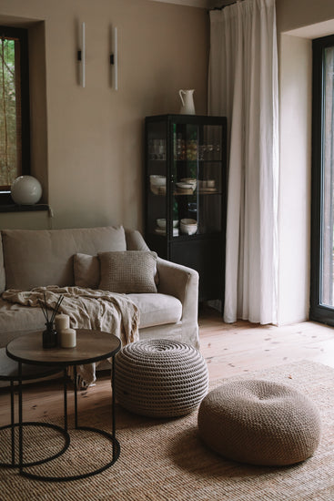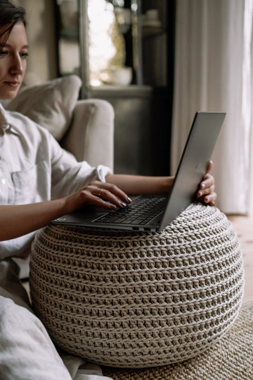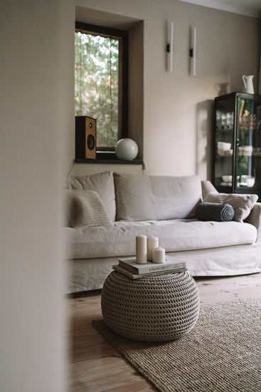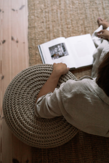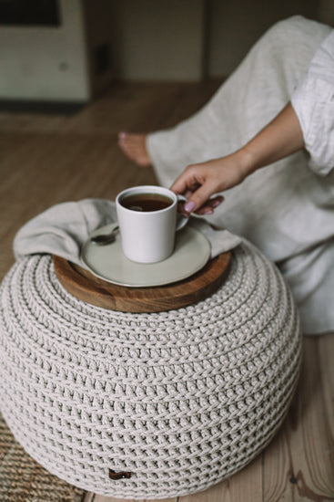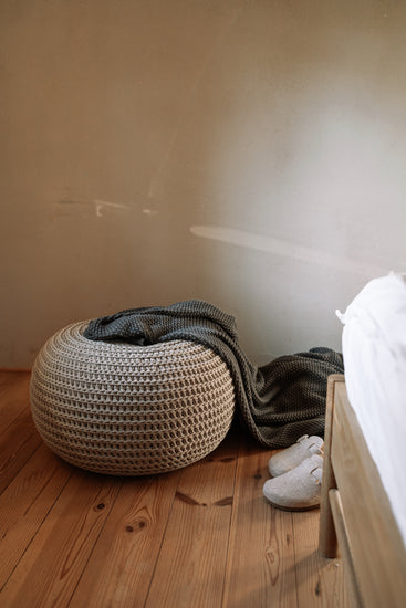 A modern crochet pouf with clean lines and rich texture, designed to bring warmth and style into any interior. Its minimalist shape makes it a versatile accent — use it as a footrest, extra seating, or a cozy detail in your living room or reading nook.